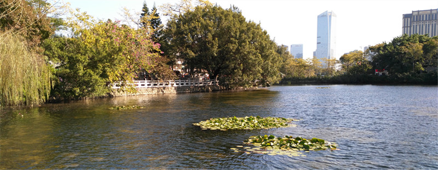 南南湖水面約12萬平方米,水深1.6 m 至2.2 m 之間。由于葉綠素和懸浮物濃度高,南湖水色常年為黃綠色,透明度低,感觀很差。屬劣V類水質。