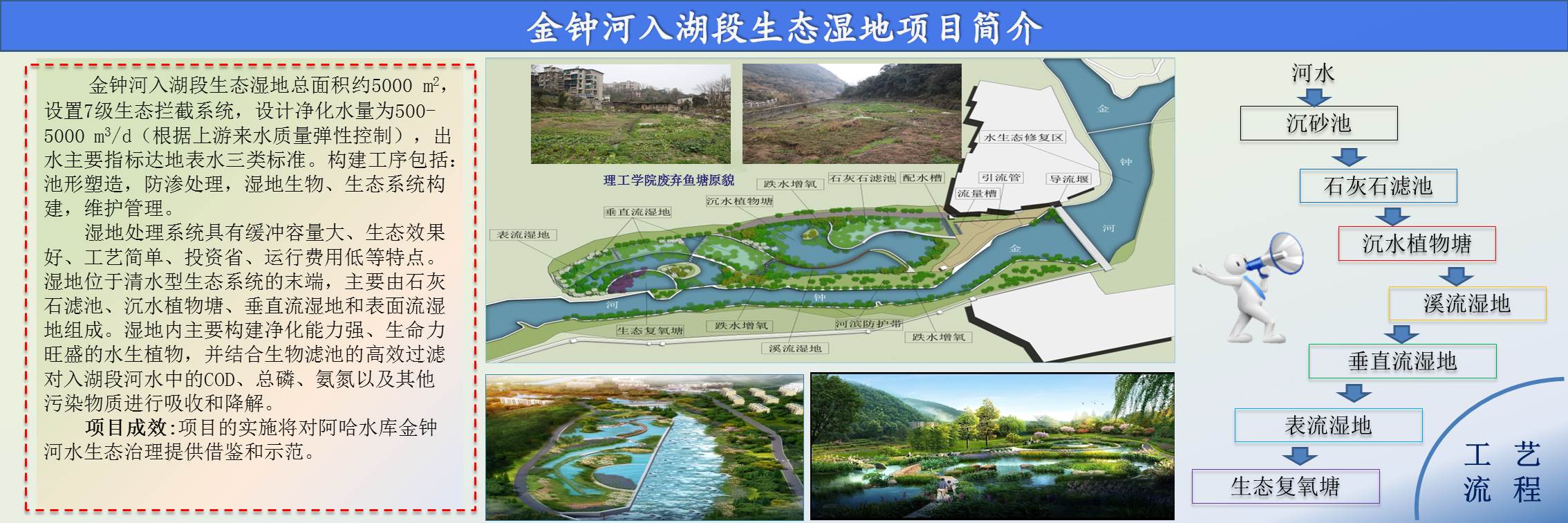 中科水治理此次為對阿哈水庫入湖段—金鐘河末端進(jìn)行生態(tài)治理,通過清水型生態(tài)系統(tǒng)的構(gòu)建、生態(tài)濕地的打造,提升河流的自凈能力,守住阿哈水庫入湖段最后1公里防線。