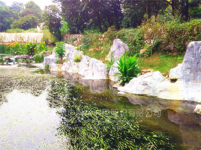 金鐘河生態(tài)濕地不僅滿足了凈化污水的需求,在構(gòu)建同時(shí)還結(jié)合了園林綠化工藝,設(shè)置了假山、灌木、人行步道等景觀設(shè)施,儼然呈現(xiàn)出一個(gè)生態(tài)公園的景象。
